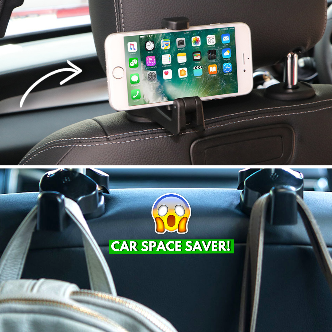 Are you tired of bags rolling around on the floor? Do you want to organize back seat clutter and opens up seat, floor, and legroom? Our Carpus - 2in1 Multi-functional Car Headrest Hook is the perfect solution for you. It is designed to keep your hands free while driving, enjoying music, and more!
