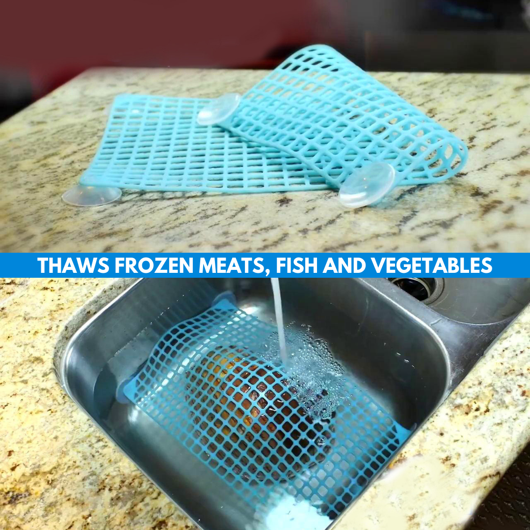 Solve that problem with our FastDefrost - Defrosting Net. It can be used for defrosting or just washing the vegetables or fruits in your sink. The net is large enough to be used for any type of food. This looks like a net and you can place it at the bottom of your sink. The whole process of defrosting will be finished faster because it will keep your food in place and enable it to be in direct contact with hot water. It will also make all the additional dishes unnecessary.