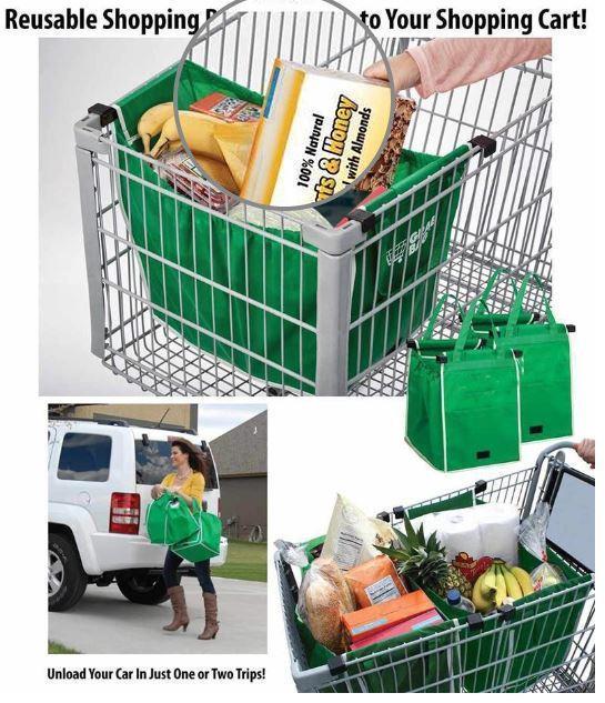 - The bag clips onto the side of your shopping cart, so you can add items quickly and easily.