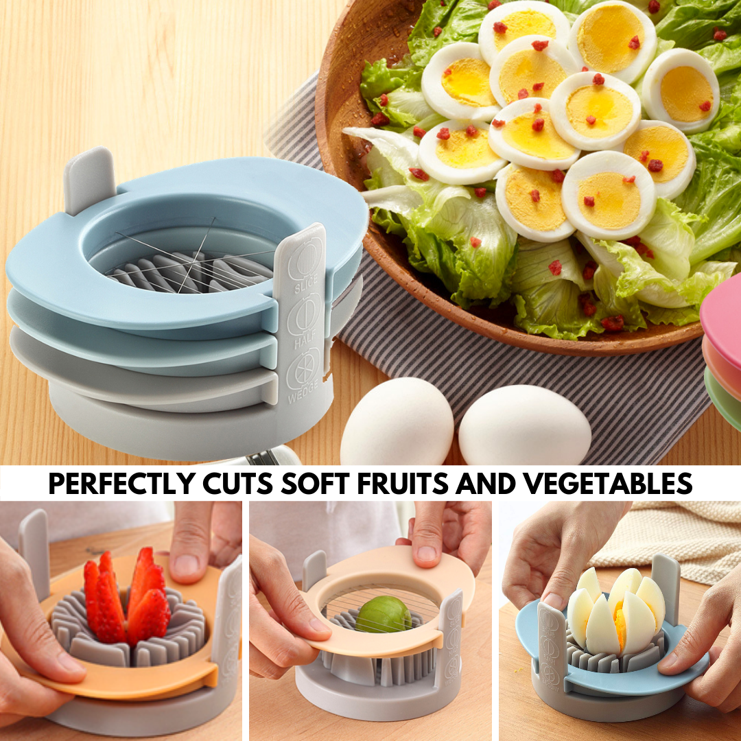 Do you want to cut eggs in the easiest and fastest way? Our 3-in-1 Ultimate Egg Slicer Tool allows you to cut boiled eggs into thin slices, wedges, and halves. It can also be used to cut certain fruits, vegetables, dairy products or even soft cakes. Three functions of half cut, cut, and a slice is integrated. With an easy to store design that can be stacked to save space.
