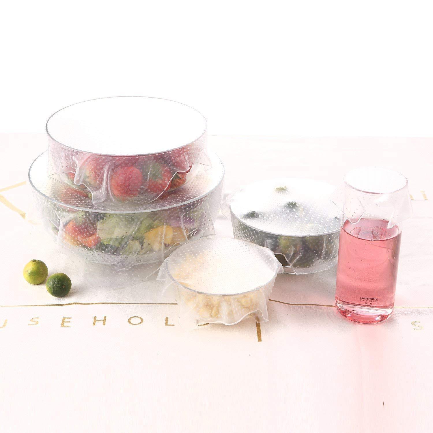 The wraps are made of durable and stretchable silicone so that they can fit any shape. Cover bowls, glasses, coffee cups, mugs, pots and pans, cans, plastic food containers and more. Environmental silicone does no harm to food and human bodies.