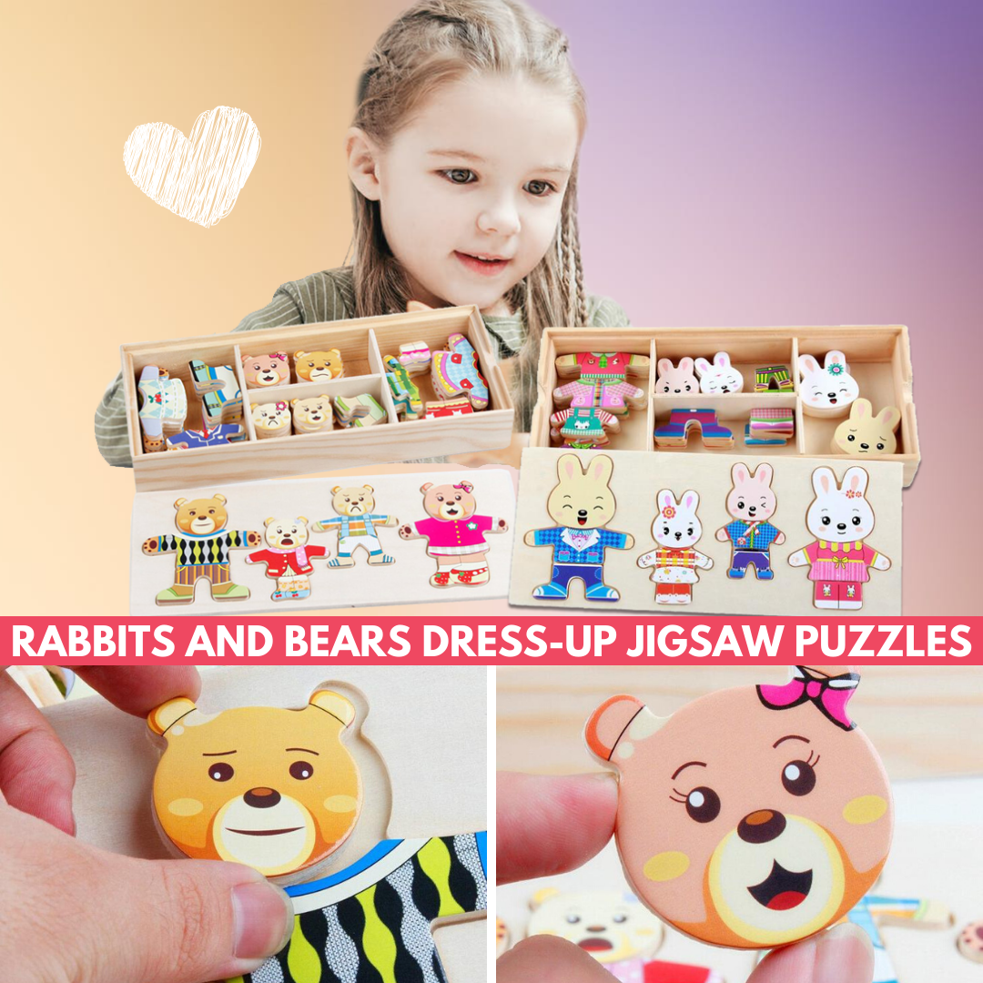 The stylish colors will attract children’s attention and develop their color recognition. Different expressions of the four bears or rabbits convey the mood and will inspire children to have storytelling. This dress-up jigsaw puzzle is the best gift for toddlers!