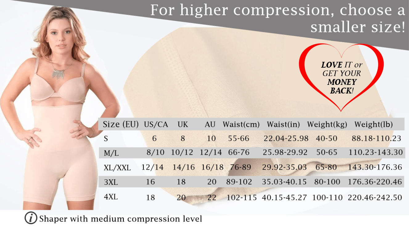 Get the body you always desired in no time with the most comfortable high waist body shaper! Our true to size Comfortable Fit - High Waist Shaper will immediately slim your tummy, waist, hips, and thighs, giving you control over them. With a medium compression level, you will accentuate your curves and enhance your buttocks!