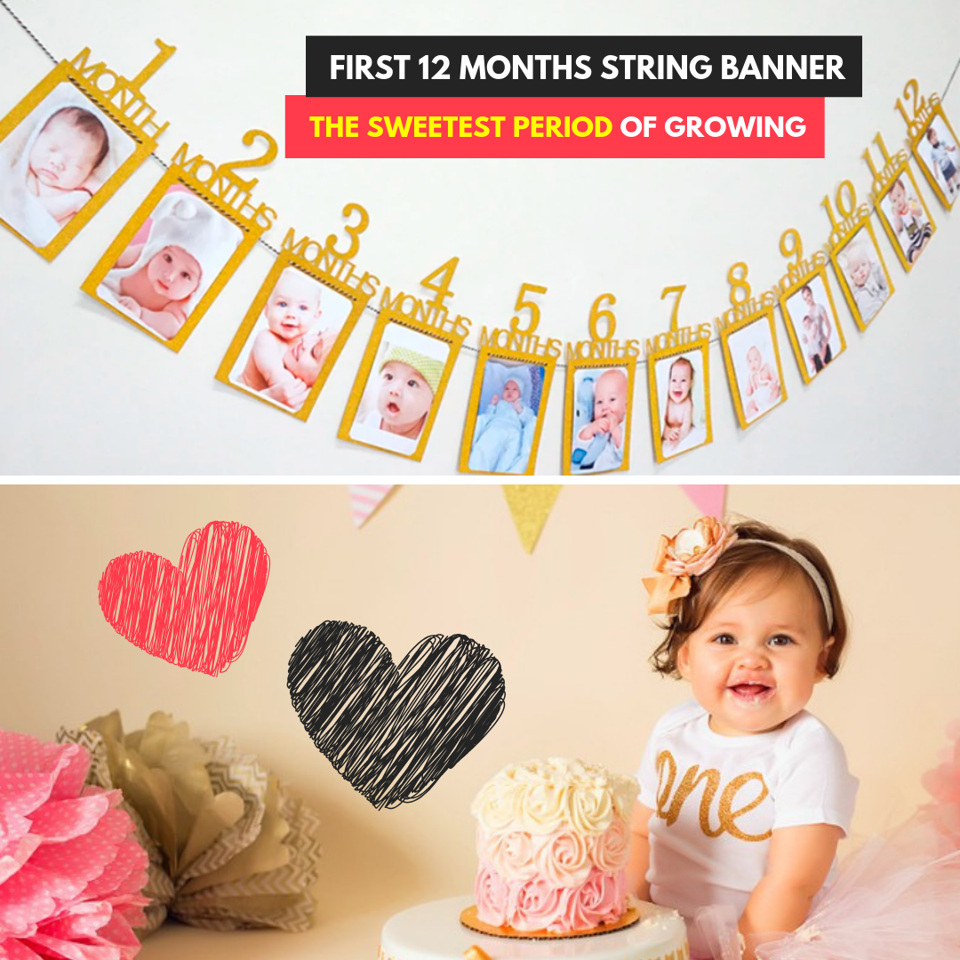 The perfect and unique way to make a beautiful decoration out of photos you keep in a cute but small photo frame. Photo for every month! This photo frame is a unique way to supervise and see your child's growth through the first year.